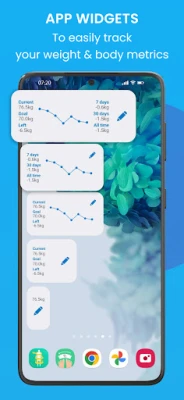 **Weight Tracker, Measures & BMI Calculator** tekee edistymisesi seuraamisesta vaivatonta ja tarkkaa. Kirjaa päivittäiset painosi ja havaitse kehitystrendit helposti, tai syvenny kehonmuutoksiin kirjaamalla kattavia mittaustietoja. Sovelluksen integroitu painoindeksilaskuri (BMI) tarjoaa nopean arvion terveydentilastasi jokaisen punnituksen yhteydessä, ja voit seurata myös kehon rasvaprosenttia ajan mittaan. Muunna numeeriset tiedot visuaaliseksi tarinaksi päiväkirjatoiminnolla, johon voit tallentaa ajatuksia, tunteita ja jopa kuvia kehostasi eri vaiheissa – näe muutos konkreettisesti "ennen ja jälkeen" -kuvien avulla.