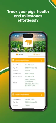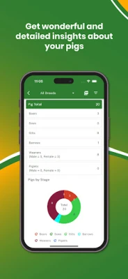 My Piggery Manager tekee jokaisen yksittäisen sian profiilin luomisesta vaivatonta. Voit kirjata ylös rodun, tunnistenumeron, painon, terveystiedot ja sukulinjan. Seuraa painonnousua ja rehun hyötysuhdetta tarkasti, tehden päätöksiä, jotka parantavat lihan tuotantoa ja markkinavalmiutta. Sovellus on korvaamaton myös jalostuksen ja hedelmällisyyden seurannassa: pidä kirjaa siemennyksistä, tiineyksistä, porsimisista ja emakoiden tuottavuudesta, vahvistaen näin karjasi genetiikkaa ja ehkäisten sairauksia rokotus- ja hoitoseurannan avulla.