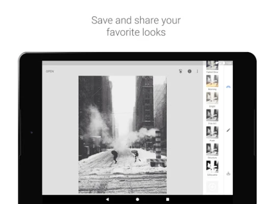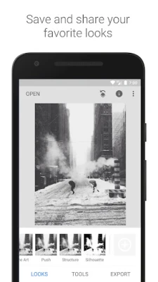 Snapseed on Googlen kehittämä kattava ja ammattimainen kuvanmuokkausohjelma. Se tarjoaa 29 työkalua ja suodatinta, kuten Korjaavan, Rakenne- ja HDR-toiminnot, sekä JPG- ja RAW-tiedostojen tuen. Luo ja tallenna omia tyylejäsi ja hienosäädä kuvia tarkasti.